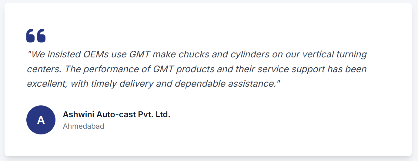 All customers want a “quality” product. Having served the metalworking industry in India for 60 years, GMT prides itself on